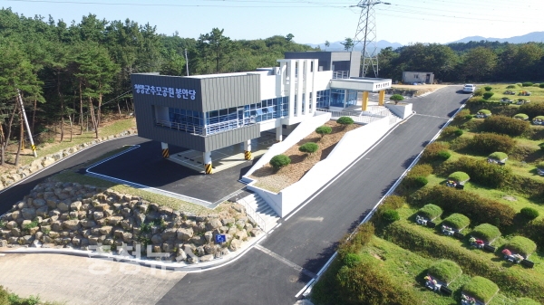 군은 지난 2001년 반지하식으로 건축한 봉안당이 습기와 누수 등으로 민원이 지속되자 2014년부터 신축 계획을 수립해 예산을 확보하고 2016년 11월 착공했다.