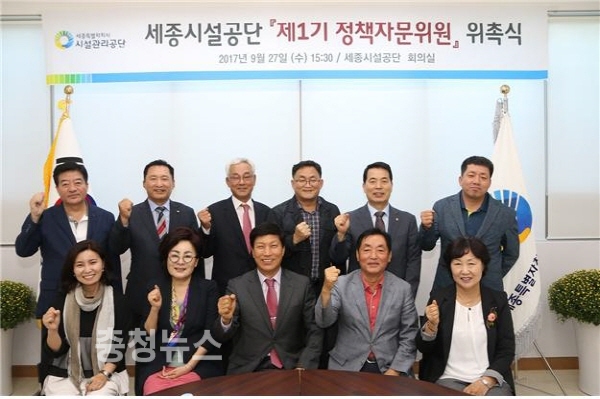 정책자문위원회 당연직 위원장으로는 신인섭 세종시설관리공단 이사장, 부위원장은 이두식 이텍산업(주) 대표가 선출되었으며, 자문위원의 임기는 2년이다.
