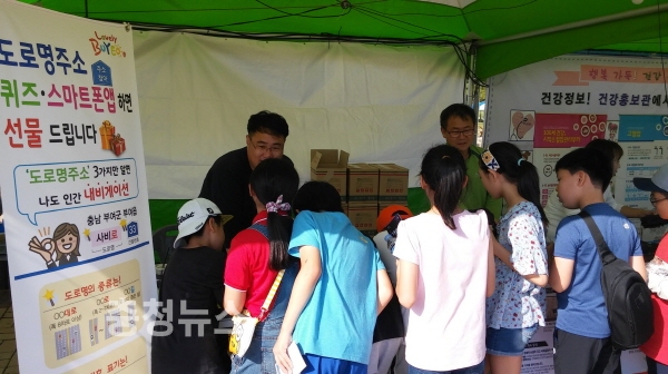 특히, '우리집 도로명주소 쓰기', 도로명주소 앱인 '주소찾아' 설치 이벤트를 실시해 도로명주소 표기법에 맞게 주소를 작성하고 '주소찾아' 앱을 설치한 군민 및 관광객에게 도로명주소 홍보물품을 제공해 인기를 얻었다.