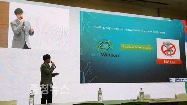 이 자리에서 남서울대 임상병리학과 정은찬 학생은 유창한 영어 발표로 교수, 학생 실무자들에게 높은 찬사를 받았다.
