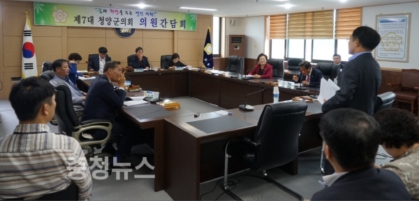 청양군의회(의장 이기성)은 10일 산업건설위원회 회의실에서 '10월 의원 간담회'를 개최했다.