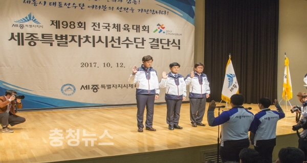 세종시교육청 선수단은 12일 오후 4시 세종시청 여민실에서 열리는 제98회 전국체육대회 세종시선수단 결단식에 참가하여 이번 대회에 출전하는 각오를 다졌다.