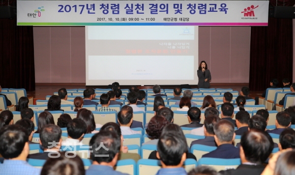 이와 함께, 군은 한국청렴윤리연구소 이지영 대표원장을 강사로 초청, ‘우리 손으로 만드는 청렴한 태안’을 주제로 국민이 공직자에 요구하는 청렴수준과 청렴의 올바른 의미를 되새기는 몰입도 높은 강의를 실시해 큰 호응을 얻기도 했다.