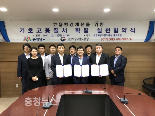 충남도와 대전지방고용노동청, 롯데지알에스㈜가 협약을 맺고 기초고용질서 확립을 위해 힘을 모은다.
