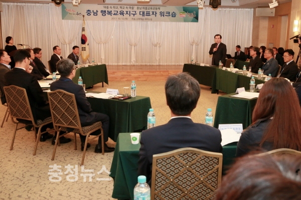 충남도교육청(교육감 김지철)은 12일 예산 리솜 스파캐슬에서 충남 7개 시군의 시장·군수와 교육장 14명을 대상으로 충남 행복교육지구 대표자 워크숍을 개최했다.