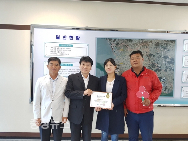 충남 서천군 장항읍행정복지센터(읍장 최창근)는 13일 (유)관우환경개발 대표 노광현 김지영 부부를 좋은이웃 16호로 선정했다고 밝혔다.