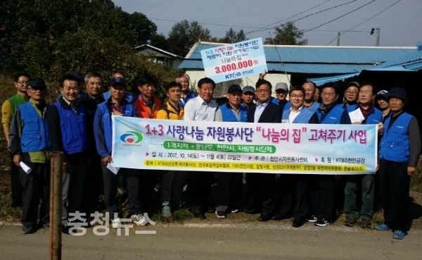 2017년 활동을 위해 KT&G천안공장(공장장 강훈구)에서 2016년에 이어, 3백만원을 후원했으며, 모두 22일에 걸쳐 총7개 단체 330여명이 참여하여 창호, 천장 보수, 방문 교체, 전기필름설치, 보일러설치, 보일러실 정비, 전기, 도배․장판, 굴뚝 및 기둥 보수, 마당정비 등의 집수리로 희망을 가득 담은 나눔의 집을 탄생시킬 계획이다.