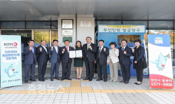 충남 천안시는 시민의 가까운 곳에서 전화민원 안내 서비스를 제공하며 시의 친절 이미지를 높여온 ‘천안시콜센터’가 ‘ISO 9001:2015 품질경영시스템 인증’을 취득했다고 16일 밝혔다.