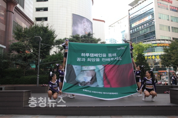 “희망 트레이너 꿈꾸는 날갯짓-하루 캠페인”은 한화갤러리아타임월드 “희망 트레이너-꿈꾸는 날갯짓” 청소년 치어리딩 프로그램에 참여하는 초․중․고 19명과 한화종합연구소 “대전 아동 Cheer-up" 치어리딩 프로그램에 참여하는 초등학생 15명이 초록우산어린이재단에서 진행하는 어린이 병원비 국가보장을 위한 ‘하루’ 캠페인을 재능기부 공연과 서명운동으로 시민들에게 널리 알리기 위해 마련됐다.
