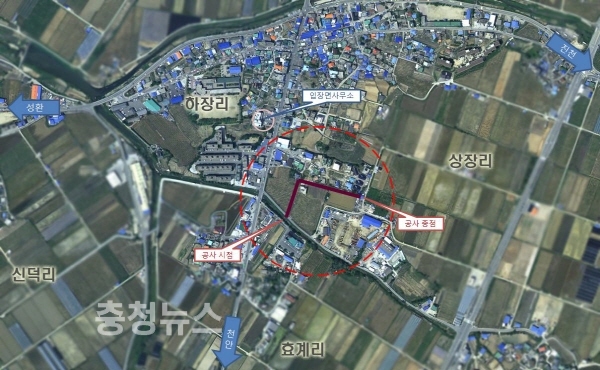 이번 공사는 하장리 이레홈타운 2차아파트에서 입장고물상을 연결하는 총길이 275m, 폭 8.0m의 도시계획도로 소로2-817호선을 2018년 준공을 목표로 개설하게 된다.