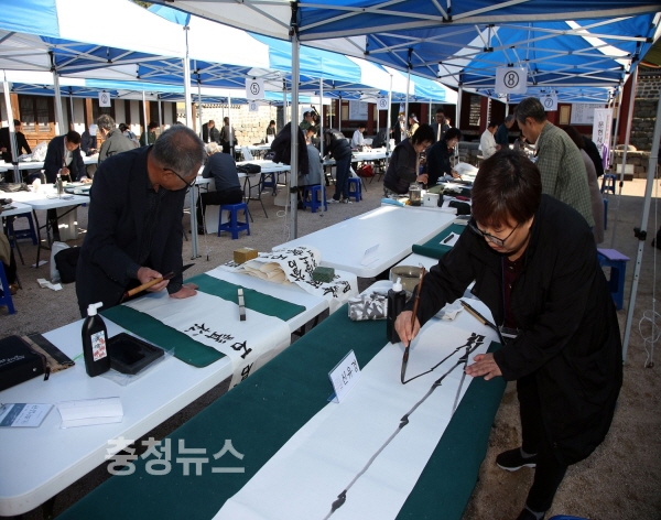 가정 이곡 선생과 목은 이색 선생 등 선현의 학덕을 기리고, 지역의 전통문화 계승과 서예문화의 확산을 이루고자 치러진 이번 문헌서원 휘호대회는 서천의 서예인들이 대거 참여해 평소 갈고 닦은 기량을 유감없이 발휘했다.