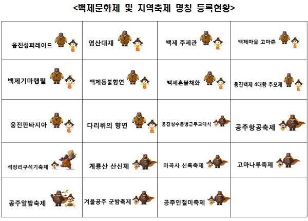 백제문화제 및 지역축제 명칭 등록현황