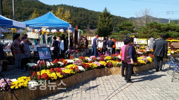 충남 공주시 유구읍 추계보건진료소가 17일 추계보건진료소 광장에서 마을 주민 등 300여명이 참석한 가운데 어르신들이 직접 가꾼 국화꽃 전시회를 개최했다.