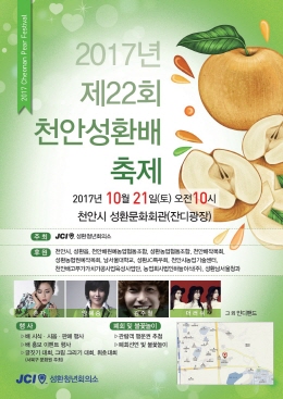 천안의 대표 특산물 ‘배’의 우수성을 알리고 생산자와 소비자가 함께 수확의 기쁨을 나누는 ‘제22회 성환 배축제’가 이달 21일 성환읍 성환문화회관 잔디광장에서 열린다.