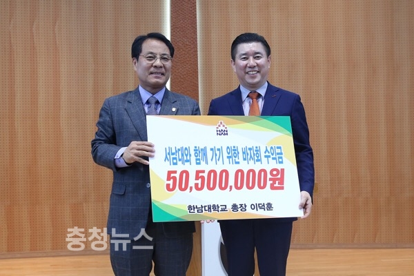 이 총장은 “학교 구성원들이 한남의 미래를 위해 바자회를 개최하고 그 수익금을 서남대 인수 중인 학교법인에 전달한 것에 감사를 드린다”고 밝혔다.