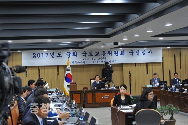 국회의 ‘물 관리 일원화 갈등’이 19일 열린 한국수자원공사에 대한 국정감사에서도 나타났다. 통합 물관리 업무를 국토교통부에서 환경부 이관을 둘러싸고 여당은 '수질', 야당은 '수량'에 우선 순위를 두면서 극명한 입장차를 보였다.