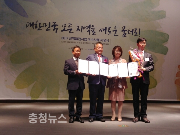 충남 부여군(군수 이용우)은 제주도 서귀포시에 개최된 2017년 균형발전사업 시상식에서 지역생활권협력사업 우수기관으로 선정됐다.
