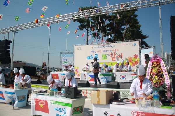 행사는 오전 10시부터 ‘아이로 보는 다문화 세상’이라는 주제로 어린이 그림그리기 대회 ▲다문화와 비다문화 가정 2인 1조의 명절음식 경진대회 ▲다문화 인형극, 나라별 의상 및 놀이 전시, 다문화 놀이 체험 및 푸드 등 다문화 체험 마당 ▲필리핀 전통 춤, 일본밴드 등 동아리 공연과 결혼이민자 장기자랑 등 다채로운 프로그램으로 열렸다.
