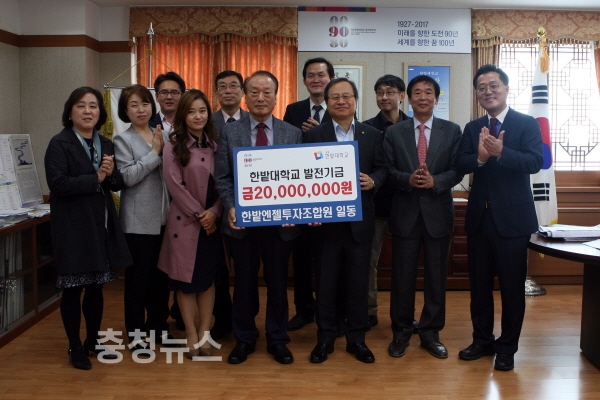 강중길 회장은 “오늘 기부한 발전기금은 우리 조합이 우량한 초기기업을 지원해 얻은 첫 수익금으로 마련한 것이라 큰 의미가 있다”며 “앞으로 한밭대 창업교육 지원을 위해 누적액 1억 원을 목표로 투자수익이 발생할 때 마다 기부를 이어갈 계획”임을 밝혔다.