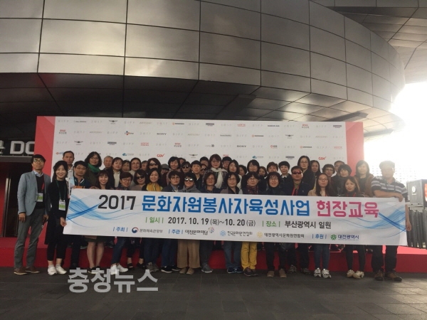 대전문화재단(대표이사 이춘아)은 지난 10월 19일~20일 1박 2일 일정으로 지역 내 미술관과 박물관 등에서 활동하는 문화자원봉사자 50여명을 대상으로 부산의 문화현장을 탐방하는 문화자원봉사자육성사업 현장교육을 실시했다.