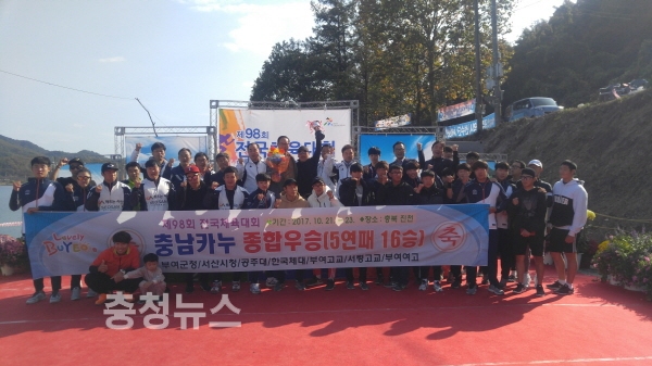 지난 20일 충청북도에서 열린 2017 전국체전에서 충남카누선수단은 16번째 종합우승과 5연패를 달성했다.