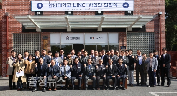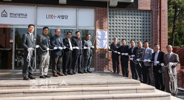 한남대학교 '사회맞춤형 산학협력선도대학 육성사업단'(LINC+)이 25일 교내 평생교육원에서 현판 제막식을 개최했다.