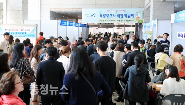 대전 서구(구청장 장종태)가 지난 25일 구청 로비에서 개최한 ‘요양보호사 취업박람회’에 700여 명의 구직자가 몰려 뜨거운 열기를 보였다.