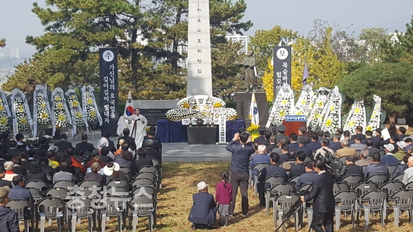 충남 아산시(시장 복기왕)는 한국자유총연맹아산시지회(지회장 김윤태) 주관으로 지난 26일  남산 안보공원 자유수호 위령탑 앞에서 제37회 자유수호희생자 합동위령제를 거행했다고 밝혔다.
