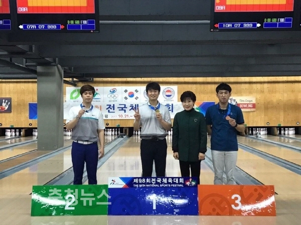 충남 천안시청 볼링팀(감독 임병구)이 ‘제98회 전국체전 볼링경기’에서 마스터즈 우승으로 금메달을 획득하는 쾌거를 이뤘다.