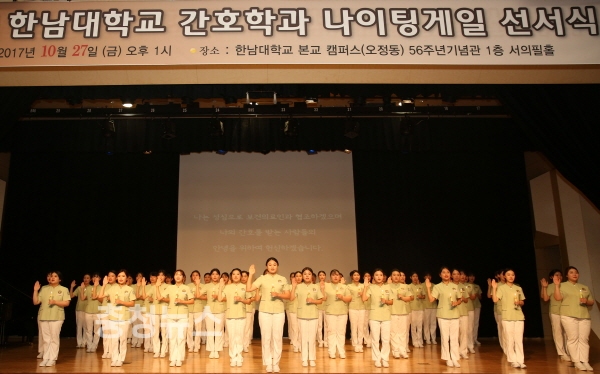 한남대 간호학과(학과장 유승연)는 27일 교내 56주년기념관 서의필홀에서 '제5회 나이팅게일 선서식'을 개최했다.