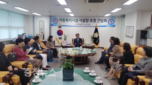 대전 중구의회(의장 하재붕)는 27일 관내 아동복지시설 시설장 22명을 초청한 가운데 아동복지관련 애로사항 의견수렴 등 대화의 시간을 가졌다.