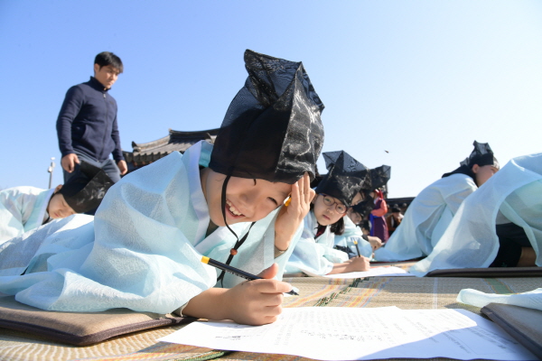 전국 각지에서 참가한 응시자 220여 명은 도포와 유건을 쓰고 초등부, 중·고등부, 대학 및 일반부로 나눠 진지한 분위기 속에서 한자시험과 한글 글짓기 실력을 겨뤘다.