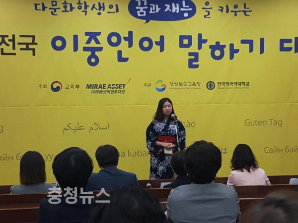 신명희 학교혁신과장은 “다문화학생의 이중언어 능력은 장래 우리나라가 국제 외교 무대에서 힘을 발휘할 수 있는 큰 자산이자 경쟁력.”이라며,“다문화 학생들이 이중언어재능을 통해 꿈과 끼를 펼 수 있도록 특성에 맞는 교육 지원을 다할 것.”이라고 말했다.