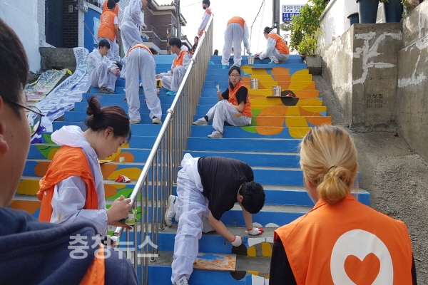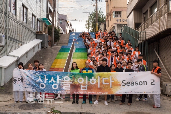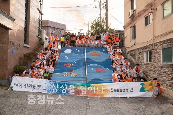 T&G충남본부(본부장 이흥주) 상상유니브 대학생봉사단인 ‘상상발룬티어’는 지난 28일 대전 중구 선화동 일원에서 일반 대학생 봉사자 등 100명이 함께 참여해 ‘상상을 입히다 시즌2, 대전 선화동의 계단을 밝히다.’를 진행했다.