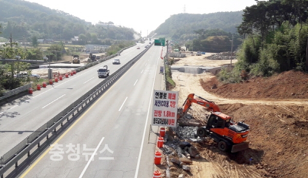 간선도로(국도32호선)에 연결되는 접속 도로(길이 3.1㎞)가 윤곽을 드러냈고 배수시설 등 주요 구조물도 속속 제모습을 갖춰가고 있다.
