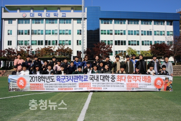 대덕대학교(총장 김상인)가 2018년도 육군3사관학교 최종 선발시험에서 38명(후보 5명 포함)의 합격생을 배출해, 전국 대학 중 최다합격 기록은 물론 역대 최고의 합격자 기록을 세웠다.