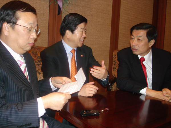 대전 정치권을 대표하는 대통합 민주신당 박병석 시당위원장,한나라당 이재선 시당위원장.국중당 권선택 시당 대표가 "대전서구 분할3개 선거구 증설 공동추진"한다는 의견에 뜻을 같이 했다.