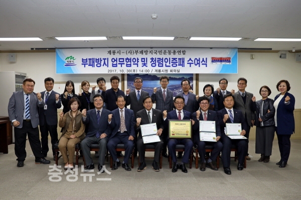 충남 계룡시(시장 최홍묵)와 국민권익위원회 소관 (사)부패방지국민운동총연합이 부패방지 및 청렴문화를 위해 손을 잡았다.