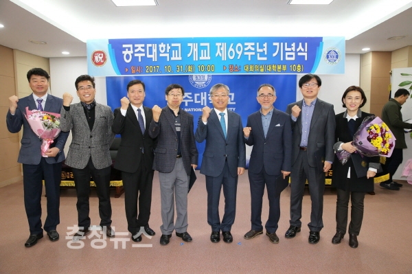 김희수 총장직무대리는 이날 축사를 통해 “공주대 구성원과 동문의 헌신적인 사랑과 열정으로 69년 동안 흔들림 없이 대학 발전을 거듭하면서 충청남도를 대표하는 국립 거점대학으로 우뚝 서게 됐다"고 말했다.