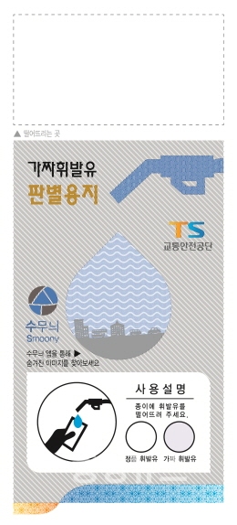 이에 따라 11월 1일 이후 자동차 검사를 위해 교통안전공단 검사소를 방문하는 차량은 조폐공사에서 만든 가짜 휘발유 판별용지를 활용, 차량에 적재된 휘발유의 진위 여부 판별 서비스를 받을 수 있게 됐다.