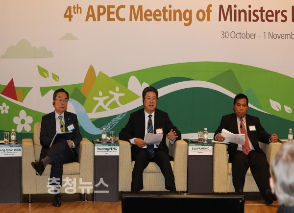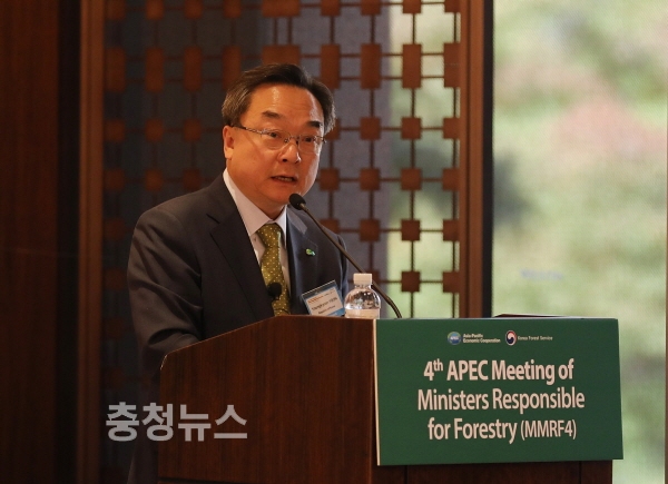 31일 제4차 아시아태평양경제협력체(APEC) 산림장관회의가 열리고 있는 서울 중구 웨스틴조선호텔에서 '숲을 통한 삶의 질 향상'이라는 제목으로 윤영균 한국산림복지진흥원장이 특별세션의 주제발표를 했다.