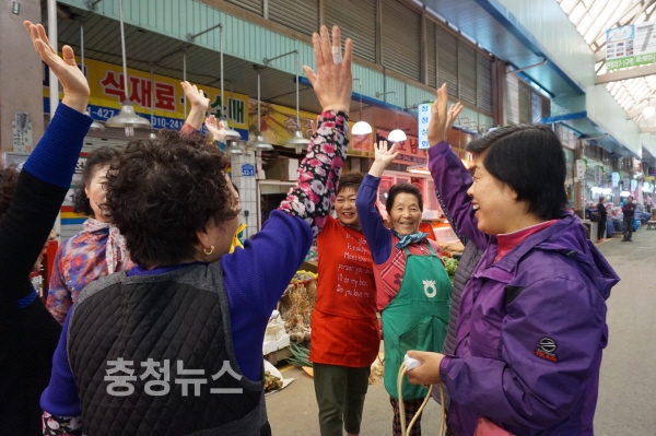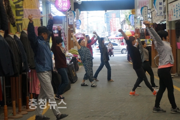 충남 논산시(시장 황명선)가 평소 건강을 챙기기 힘든 시장 상인들을 대상으로 운영하고 있는 ‘건강체조’가 호응을 얻고 있다.