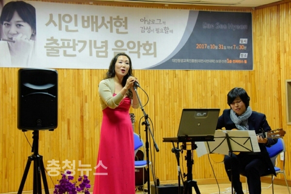 한편 이날 출판기념 음악회에는 배 시인의 지인들을 포함해 지역 문화계 인사들이 대거 찾아 객석을 가득 채웠으며 가을밤 분위기를 만끽했다.