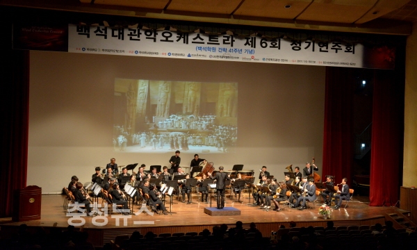 한편 이날 음악회는 백석대관악오케스트라의 여섯 번째 정기연주회를 겸해 진행됐으며, 백석대관악오케스트라는 학생, 직장인, 주부, 전문직 종사자까지 각계각층이 모여 아름다운 하모니를 이루는 순수 아마추어 단체로 음악에 관심 있는 누구에게나 문을 열어두고 있다.