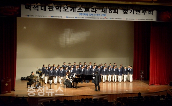 백석대학교 교가 제창으로 시작된 음악회는 백석대관악오케스트라의 협연, 백석대 뮤지컬전공의 뮤지컬 곡 공연, 백석대학합창단의 합창 순으로 이어졌다. 2부는 백석대관악오케스트라가 순서 전체를 맡아 풍성한 공연으로 진행됐다.