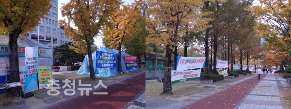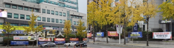대전시청과 서구청 주변이 가을 단풍이 아닌 불법 현수막에 물들고 있다.