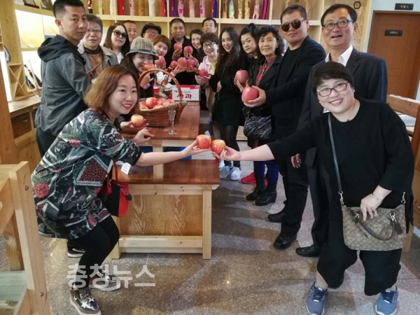 10월 중국 요녕성 여행사 관계자 팸투어 (예산 사과농장 체험 모습)