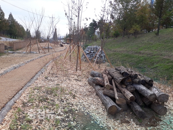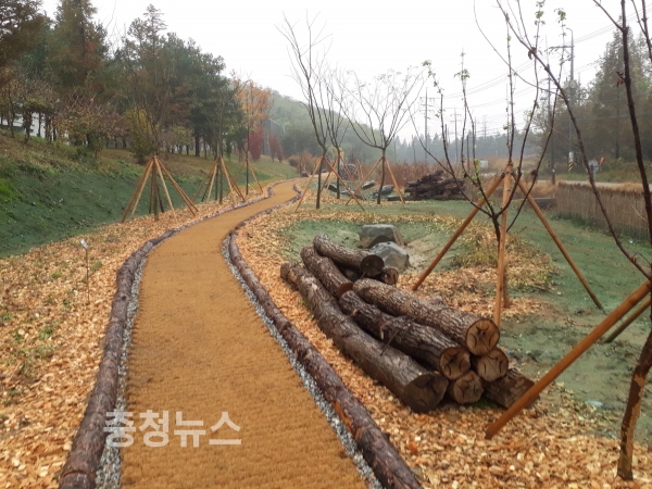 또한, 나비 초화원 입구에서 이어지는 산책로는 야자수 매트로 설치하고 식생군락지를 조성하고 다양한 초화류 및 자생식물을 식재해 봄부터 가을까지 활짝 핀 꽃과 나비, 잠자리 등 곤충을 만나볼 수 있고 시민 및 방문객들이 생태환경을 즐길 수 있도록 했다.