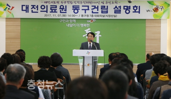 대전 동구(구청장 한현택)는 7일 구청 대회의실에서 대전의료원 동구건립 민간추진위원과 주민들을 초청해 사업추진 설명회를 개최했다.