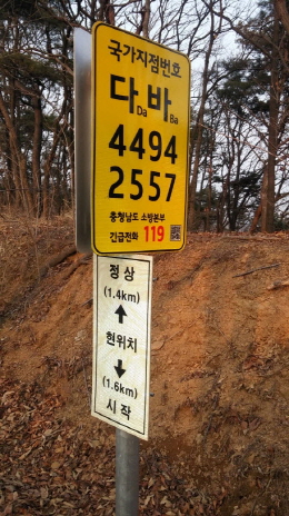 국가지점번호는 도로명주소가 없는 산악, 들판 등의 비거주지역이나 기존 등산로의 위치표시에 대해 지점번호체계를 통일시켜 응급상황 발생 시 소방, 경찰 등이 쉽게 찾을 수 있도록 한 국가표시체계이다.